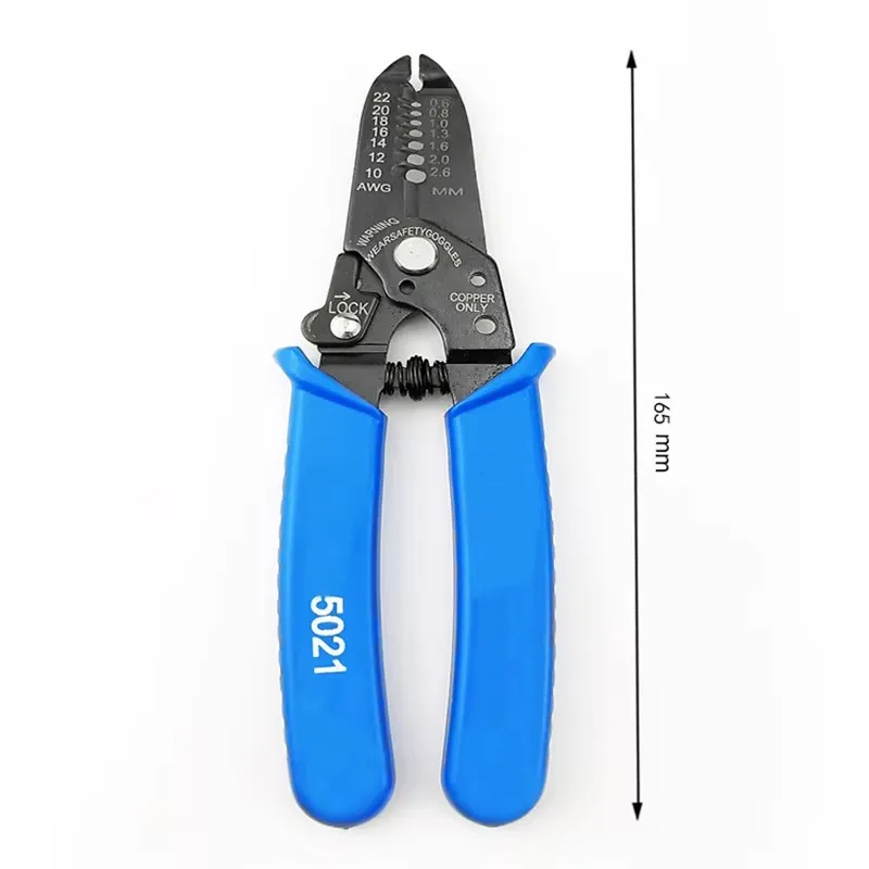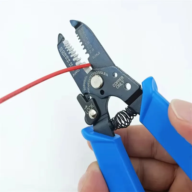 Wire stripping slots accommodate multiple wire sizes for versatile use.